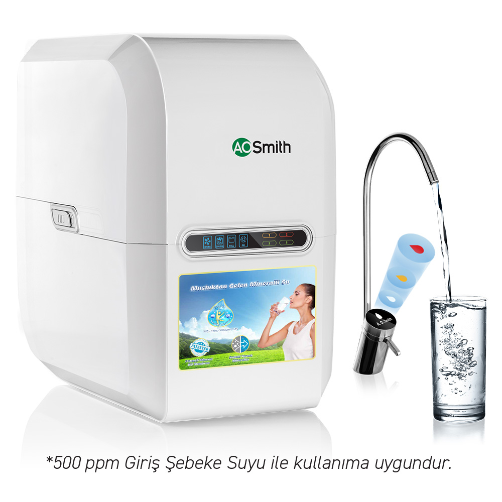 A. O. Smith’in patentli Mineral RO Membran Teknolojisi’yle de membran filtresi rakiplerine kıyasla 1.5 kat daha uzun ömürlüdür.